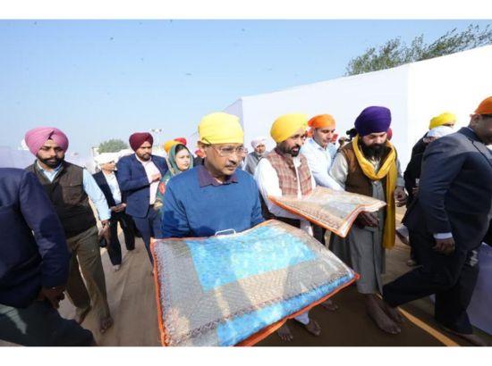 ਸ੍ਰੀ ਅਨੰਦਪੁਰ ਸਾਹਿਬ, 23 ਨਵੰਬਰ-ਨੌਵੇਂ ਪਾਤਸ਼ਾਹ ਸ੍ਰੀ ਗੁਰੂ ਤੇਗ਼ ਬਹਾਦਰ ਜੀ ਦੇ 350ਵੇਂ ਸ਼ਹੀਦੀ ਦਿਹਾੜੇ ਨੂੰ ਸਮਰਪਿਤ ਲੜੀਵਾਰ ਸਮਾਗਮਾਂ ਤਹਿਤ ਅੱਜ ਇੱਥੇ ਗੁਰਦੁਆਰਾ ਬਾਬਾ ਬੁੱਢਾ ਦਲ ਛਾਉਣੀ ਵਿਖੇ ਗੁਰਮਰਿਆਦਾ ਅਨੁਸਾਰ ਸ੍ਰੀ ਅਖੰਡ ਸਾਹਿਬ ਦੀ ਆਰੰਭਤਾ ਮੌਕੇ ਪੰਜਾਬ ਦੇ ਮੁੱਖ ਮੰਤਰੀ ਭਗਵੰਤ ਸਿੰਘ ਮਾਨ ਅਤੇ ਆਮ ਆਦਮੀ ਪਾਰਟੀ ਦੇ ਕੌਮੀ ਕਨਵੀਨਰ ਅਰਵਿੰਦ ਕੇਜਰੀਵਾਲ ਨੇ ਅਕਾਲ ਪੁਰਖ ਦਾ ਅਸ਼ੀਰਵਾਦ ਲਿਆ ਅਤੇ ਸੰਗਤ ਨਾਲ ਸਰਬੱਤ ਦੇ ਭਲੇ ਦੀ ਅਰਦਾਸ ਵਿੱਚ ਸ਼ਾਮਲ ਹੋਏ।