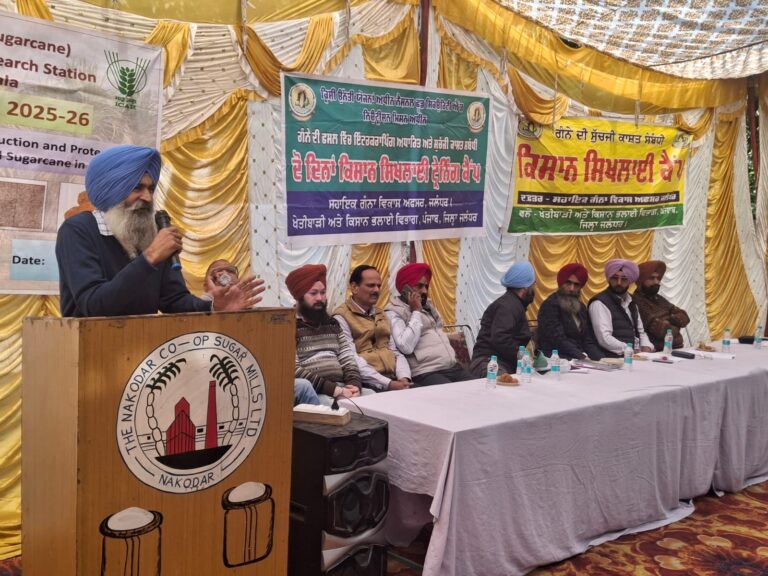 ਨਕੋਦਰ (ਜਲੰਧਰ), 27 ਨਵੰਬਰ : ਖੇਤੀਬਾੜੀ ਅਤੇ ਕਿਸਾਨ ਭਲਾਈ ਵਿਭਾਗ ਦੀ ਗੰਨਾ ਸ਼ਾਖਾ ਵਲੋਂ ਉੱਨਤ ਕ੍ਰਿਸ਼ੀ ਯੋਜਨਾ ਤਹਿਤ ਸਹਿਕਾਰੀ ਖੰਡ ਮਿੱਲ ਨਕੋਦਰ ਵਿਖੇ ਡਾ. ਮਨਧੀਰ ਸਿੰਘ ਪ੍ਰਾਜੈਕਟ ਅਫ਼ਸਰ ਦੀ ਅਗਵਾਈ ਹੇਠ ਦੋ ਰੋਜ਼ਾ ਗੰਨੇ ਦੀ ਫ਼ਸਲ ਸਬੰਧੀ ਕਿਸਾਨ ਜਾਗਰੂਕਤਾ ਕੈਂਪ/ਟ੍ਰੇਨਿੰਗ ਲਗਾਈ ਗਈ। ਟ੍ਰੇਨਿੰਗ ਦੌਰਾਨ ਸਹਾਇਕ ਗੰਨਾ ਵਿਕਾਸ ਅਫ਼ਸਰ ਡਾ. ਗੁਰਚਰਨ ਸਿੰਘ, ਪ੍ਰਿੰਸੀਪਲ ਸਾਇੰਸਟਿਸਟ ਕਿਸਾਨ ਸਲਾਹਕਾਰ ਕੇਂਦਰ ਜਲੋਵਾਲ ਡਾ. ਮਨਿੰਦਰ ਸਿੰਘ, ਕੀਟ ਵਿਗਿਆਨੀ ਡਾ. ਯੁਵਰਾਜ ਸਿੰਘ, ਫ਼ਸਲ ਵਿਗਿਆਨੀ, ਗੰਨਾ ਖੋਜ ਕੇਂਦਰ ਕਪੂਰਥਲਾ ਡਾ. ਰਾਜਿੰਦਰ ਪਾਲ ਨੇ ਗੰਨੇ ਦੀਆਂ ਕਾਸ਼ਤਕਾਰੀ ਤਕਨੀਕਾਂ, ਕੀੜੇ-ਮਕੌੜਿਆਂ ਦੀ ਰੋਕਥਾਮ, ਰੋਗ ਪ੍ਰਬੰਧਨ, ਗੰਨੇ ਦੀ ਅੰਤਰ-ਫ਼ਸਲੀ ਅਤੇ ਕਿਸਾਨਾਂ ਦੀ ਭਲਾਈ ਸਬੰਧੀ ਵੱਖ-ਵੱਖ ਸਰਕਾਰੀ ਸਕੀਮਾਂ ਬਾਰੇ ਕਿਸਾਨਾਂ ਨੂੰ ਜਾਣਕਾਰੀ ਦਿੱਤੀ। ਕਿਸਾਨਾਂ ਨੂੰ ਸੰਬੋਧਨ ਕਰਦਿਆਂ ਡਾ. ਗੁਰਚਰਨ ਸਿੰਘ ਨੇ ਕਿਹਾ ਕਿ ਕ੍ਰਿਸ਼ੀ ਉੱਨਤ ਯੋਜਨਾ ਤਹਿਤ ਨੈਸ਼ਨਲ ਫੂਡ ਸਕਿਓਰਟੀ ਅਤੇ ਪੋਸ਼ਣ ਮਿਸ਼ਨ ਅਧੀਨ ਪੰਜਾਬ ਸਰਕਾਰ ਵਲੋਂ ਗੰਨੇ ਦੀ ਪ੍ਰਤੀ ਹੈਕਟੇਅਰ ਪੈਦਾਵਾਰ ਵਧਾ ਕੇ ਪੰਜਾਬ ਵਿੱਚ ਗੰਨੇ ਦੀ ਫ਼ਸਲ ਵਿਚ ਅੰਤਰ ਫ਼ਸਲਾਂ ਹੇਠ ਰਕਬਾ ਵਧਾਉਣ ਲਈ ਪ੍ਰਦਰਸ਼ਨੀ ਪਲਾਟ ਲਗਾਏ ਜਾ ਰਹੇ ਹਨ ਤਾਂ ਜੋ ਗੰਨਾ ਕਾਸ਼ਤਕਾਰਾਂ ਦੀ ਆਰਥਿਕਤਾ ਮਜ਼ਬੂਤ ਕੀਤੀ ਜਾ ਸਕੇ। ਇਸ ਤੋਂ ਇਲਾਵਾ ਇਸ ਮਿਸ਼ਨ ਦਾ ਮਕਸਦ ਫ਼ਸਲ ਉਤਪਾਦਨ, ਤਕਨੀਕ ਅਤੇ ਬੀਜਾਂ ਲਈ ਸਹਾਇਤਾ ਪ੍ਰਦਾਨ ਕਰਕੇ ਅਨਾਜ ਉਤਪਾਦਨ ਨੂੰ ਵਧਾਉਣਾ, ਮਿੱਟੀ ਦੀ ਸਿਹਤ ਨੂੰ ਬਹਾਲ ਕਰਨਾ, ਕਿਸਾਨਾਂ ਦੀ ਆਮਦਨ ਵਿੱਚ ਸੁਧਾਰ ਕਰਨਾ ਅਤੇ ਪੋਸ਼ਣ ਸੁਰੱਖਿਆ ਨੂੰ ਵਧਾਉਣਾ ਹੈ। ਇਸ ਸਕੀਮ ਤਹਿਤ ਖ਼ੇਤੀਬਾੜੀ ਅਤੇ ਕਿਸਾਨ ਭਲਾਈ ਵਿਭਾਗ ਦੀ ਗੰਨਾ ਸ਼ਾਖਾ ਵਲੋਂ ਕਿਸਾਨਾਂ ਨੂੰ ਟ੍ਰੇਨਿੰਗ ਦਿੱਤੀ ਜਾ ਰਹੀ ਹੈ।ਉਨ੍ਹਾਂ ਕਿਹਾ ਕਿ ਗੰਨਾ ਪੰਜਾਬ ਦੀ ਕਣਕ , ਝੋਨਾ ਅਤੇ ਕਪਾਹ ਤੋਂ ਬਾਅਦ ਚੌਥੀ ਅਜਿਹੀ ਨਕਦੀ ਫ਼ਸਲ ਹੈ, ਜੋ ਮੌਸਮ ਦੇ ਬੁਰੇ ਪ੍ਰਭਾਵਾਂ ਨੂੰ ਸਹਿ ਕੇ ਵੀ ਗੰਨਾ ਕਾਸ਼ਤਕਾਰਾਂ ਨੂੰ ਆਮਦਨ ਦੇ ਜਾਂਦੀ ਹੈ। ਡਾ. ਰਜਿੰਦਰ ਪਾਲ ਨੇ ਕਿਹਾ ਕਿ ਗੰਨੇ ਦੀ ਪ੍ਰਤੀ ਹੈਕਟੇਅਰ ਪੈਦਾਵਰ ਵਧਾਉਣ ਦੇ ਮਕਸਦ ਨਾਲ ਗੰਨਾ ਕਾਸ਼ਤਕਾਰਾਂ ਨੂੰ ਚੌੜੀ ਵਿੱਥ ਵਿਧੀ ਅਪਣਾਉਣ ਲਈ ਪ੍ਰੇਰਿਤ ਕੀਤਾ ਜਾ ਰਿਹਾ ਹੈ। ਇਸ ਵਿਧੀ ਨਾਲ ਬੀਜੀ ਗੰਨੇ ਦੀ ਫ਼ਸਲ ਦੇ ਬੂਟਿਆਂ ਨੂੰ ਵਧੇਰੇ ਰੌਸ਼ਨੀ ਅਤੇ ਹਵਾ ਮਿਲਦੀ ਹੈ, ਜਿਸ ਨਾਲ ਫ਼ਸਲ ਘੱਟ ਡਿੱਗਣ ਕਾਰਨ ਪੈਦਾਵਾਰ ਵਿਚ ਵਾਧਾ ਹੁੰਦਾ ਹੈ।ਖੇਤੀਬਾੜੀ ਅਫ਼ਸਰ (ਟ੍ਰੇਨਿੰਗ) ਡਾ. ਪ੍ਰਵੀਨ ਕੁਮਾਰੀ ਨੇ ਦੱਸਿਆ ਕਿ ਗੰਨੇ ਦੀ ਬਿਜਾਈ ਦੇ ਨਾਲ ਦਾਲਾਂ ਦੀ ਅੰਤਰ ਖੇਤੀ ਕਰਨ ਨਾਲ ਜ਼ਮੀਨ ਦੀ ਸਿਹਤ ਵਿੱਚ ਸੁਧਾਰ ਅਤੇ ਖਾਦਾਂ ਦੀ ਬੱਚਤ ਕੀਤੀ ਜਾ ਸਕਦੀ ਹੈ । ਜਨਰਲ ਮੈਨੇਜਰ ਖੰਡ ਮਿੱਲ ਨਕੋਦਰ ਸੁਖਵਿੰਦਰ ਸਿੰਘ ਤੂੜ ਨੇ ਕਿਸਾਨਾਂ ਨੂੰ ਦੱਸਿਆ ਕਿ ਮਿੱਲ ਵਿਚ ਗੰਨੇ ਦੀ ਪਿੜਾਈ ਮਿਤੀ 28 ਨਵੰਬਰ ਤੋਂ ਕੀਤੀ ਜਾ ਰਹੀ ਹੈ। ਸੀ.ਸੀ.ਡੀ.ਓ. ਏਕਮ ਸਿੰਘ ਸਿੱਧੂ ਨੇ ਅੰਤ ਵਿੱਚ ਦੋ ਦਿਨਾ ਟ੍ਰੇਨਿੰਗ ਵਿੱਚ ਅਏ ਹੋਏ ਕਿਸਾਨਾਂ ਦਾ ਧੰਨਵਾਦ ਕੀਤਾ।