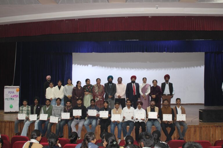 ਲੁਧਿਆਣਾ, 5 ਫਰਵਰੀ:ਲੁਧਿਆਣਾ ਵਿਖੇ ਚੱਲ ਰਿਹਾ 7-ਰੋਜ਼ਾ ‘ਯੁਵਾ ਆਪਦਾ ਮਿੱਤਰ’ ਸਿਖਲਾਈ ਕੈਂਪ ਵੀਰਵਾਰ ਨੂੰ ਸਫਲਤਾਪੂਰਵਕ ਸੰਪੰਨ ਹੋ ਗਿਆ। ਇਸ ਸਮਾਪਤੀ ਸਮਾਰੋਹ ਦੌਰਾਨ 230 ਵਲੰਟੀਅਰਾਂ ਜਿਨ੍ਹਾਂ ਵਿੱਚ ਰਾਸ਼ਟਰੀ ਸੇਵਾ ਯੋਜਨਾ (ਐਨ.ਐਸ.ਐਸ) ਦੇ 218 ਵਲੰਟੀਅਰ ਅਤੇ ਨਹਿਰੂ ਯੁਵਾ ਕੇਂਦਰ ਸੰਗਠਨ (ਐਨ.ਵਾਈ.ਕੇ.ਐਸ) ਦੇ 12 ਵਲੰਟੀਅਰ ਨੂੰ ‘ਫਸਟ ਰਿਸਪੌਂਡਰ’ ਵਜੋਂ ਸਰਟੀਫਿਕੇਟ ਦੇ ਕੇ ਸਨਮਾਨਿਤ ਕੀਤਾ ਗਿਆ।ਜ਼ਿਲ੍ਹਾ ਫੈਲੋਸ਼ਿਪ ਅਫ਼ਸਰ ਸ਼੍ਰੀ ਅੰਬਰ ਬੰਦੋਪਾਧਿਆਏ ਨੇ ਇਸ ਸਮਾਪਤੀ ਸਮਾਰੋਹ ਦੌਰਾਨ ਮੁੱਖ ਮਹਿਮਾਨ ਵਜੋਂ ਸ਼ਿਰਕਤ ਕੀਤੀ। ਉਨ੍ਹਾਂ ਨੇ ਵਲੰਟੀਅਰਾਂ ਨੂੰ ਦੇਸ਼ ਦੀ ਸੇਵਾ ਲਈ ਤਤਪਰ ਰਹਿਣ ਲਈ ਪ੍ਰੇਰਿਤ ਕੀਤਾ। ਸਮਾਰੋਹ ਦੌਰਾਨ ਵਲੰਟੀਅਰਾਂ ਵੱਲੋਂ ਸੱਭਿਆਚਾਰਕ ਪ੍ਰੋਗਰਾਮ ਪੇਸ਼ ਕੀਤੇ ਗਏ ਜਿਸ ਨੇ ਮਾਹੌਲ ਨੂੰ ਖੁਸ਼ਗਵਾਰ ਬਣਾ ਦਿੱਤਾ।ਮਹਾਤਮਾ ਗਾਂਧੀ ਸਟੇਟ ਇੰਸਟੀਚਿਊਟ ਆਫ਼ ਪਬਲਿਕ ਐਡਮਿਨਿਸਟ੍ਰੇਸ਼ਨ (ਐਮ.ਜੀ.ਸੀ.ਪੀ.ਏ) ਪ੍ਰੋ. ਡਾ. ਜੋਗ ਸਿੰਘ ਭਾਟੀਆ ਨੇ ਮੁੱਖ ਮਹਿਮਾਨ ਨੂੰ ਸਤਿਕਾਰ ਵਜੋਂ ‘ਟੋਕਨ ਆਫ਼ ਲਵ’ ਭੇਂਟ ਕੀਤਾ ਅਤੇ ਸਮੂਹ ਵਲੰਟੀਅਰਾਂ ਨੂੰ ਉਨ੍ਹਾਂ ਦੇ ਸੁਨੇਹਰੀ ਭਵਿੱਖ ਲਈ ਸ਼ੁਭਕਾਮਨਾਵਾਂ ਦਿੱਤੀਆਂ।ਇਸ ਮੌਕੇ ਮਹਾਤਮਾ ਗਾਂਧੀ ਸਟੇਟ ਇੰਸਟੀਚਿਊਟ ਆਫ਼ ਪਬਲਿਕ ਐਡਮਿਨਿਸਟ੍ਰੇਸ਼ਨ ਦੀ ਇੰਸਟ੍ਰਕਟਰ ਟੀਮ ਹਰਕੀਰਤ ਸਿੰਘ ਅਰੋੜਾ (ਟ੍ਰੇਨਿੰਗ ਕੋਆਰਡੀਨੇਟਰ), ਮਨਜੋਤ ਕੌਰ, ਸੁਖਚੈਨ ਸਿੰਘ, ਕੋਮਲ, ਦੀਨਾਕਸ਼ੀ, ਪੂਜਾ, ਦਵਿੰਦਰ ਕੌਰ, ਜੌਹਨਸਨ, ਮਨਦੀਪ ਕੁਮਾਰ, ਰਣਜੀਤ ਸਿੰਘ ਭਾਟੀਆ ਅਤੇ ਸਲੋਨੀ ਸ਼ਰਮਾ ਵੀ ਹਾਜ਼ਰ ਸੀ।