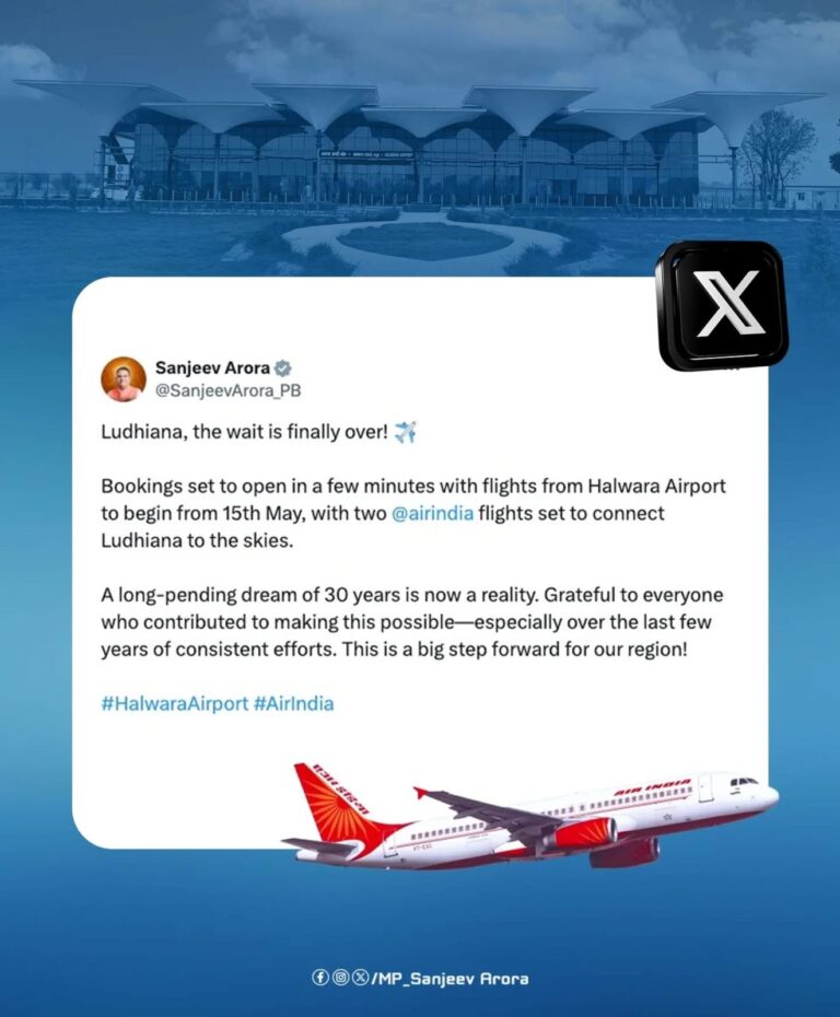ਉਡਾਣਾਂ ਦੀ ਸ਼ੁਰੂਆਤ ਨਿਰੰਤਰ ਯਤਨਾਂ ਦਾ ਨਤੀਜਾ ਹੈ, ਜੋ ਸੰਜੀਵ ਅਰੋੜਾ ਦੀ ਖੇਤਰੀ ਸੰਪਰਕ ਨੂੰ ਮਜ਼ਬੂਤ ਕਰਨ ਅਤੇ ਪੰਜਾਬ, ਖਾਸ ਤੌਰ ‘ਤੇ ਲੁਧਿਆਣਾ ਅਤੇ ਇਸਦੇ ਆਸ-ਪਾਸ ਦੇ ਜ਼ਿਲ੍ਹਿਆਂ ਲਈ ਆਰਥਿਕ ਵਿਕਾਸ ਵਿੱਚ ਤੇਜ਼ੀ ਲਿਆਉਣ ਪ੍ਰਤੀ ਦ੍ਰਿੜ ਵਚਨਬੱਧਤਾ ਨੂੰ ਦਰਸਾਉਂਦਾ ਹੈ।