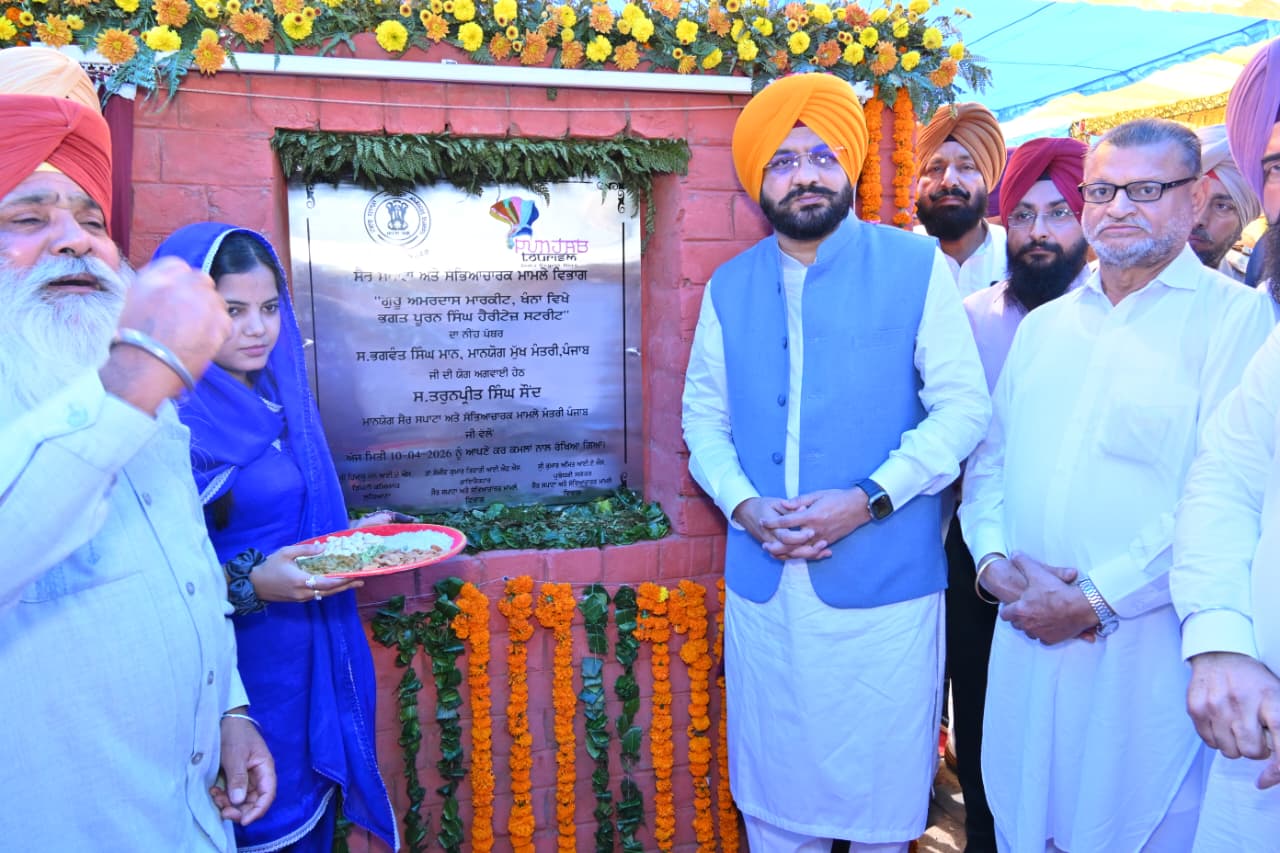 ਪੰਜਾਬ ਸਰਕਾਰ ਵੱਲੋਂ ਹਲਕਾ ਖੰਨਾ ਅਤੇ ਸ਼ਹਿਰ ਵਾਸੀਆਂ ਨੂੰ ਵੱਡਾ ਤੋਹਫਾ ਦਿੰਦਿਆਂ ਸ਼ੁੱਕਰਵਾਰ ਨੂੰ ਸੈਰ ਸਪਾਟਾ ਤੇ ਸੱਭਿਆਚਾਰਕ ਮਾਮਲੇ, ਕਿਰਤ, ਪ੍ਰਾਹੁਣਚਾਰੀ ਅਤੇ ਪੇਂਡੂ ਵਿਕਾਸ ਤੇ ਪੰਚਾਇਤਾਂ ਮੰਤਰੀ, ਪੰਜਾਬ ਸ੍ਰੀ ਤਰੁਨਪ੍ਰੀਤ ਸਿੰਘ ਸੌਂਦ ਨੇ ਗੁਰੂ ਅਮਰਦਾਸ ਮਾਰਕੀਟ ਖੰਨਾ ਵਿਖੇ ‘ਭਗਤ ਪੂਰਨ ਸਿੰਘ ਹੈਰੀਟੇਜ ਸਟਰੀਟ’ ਬਣਾਉਣ ਲਈ 12.03 ਕਰੋੜ ਰੁਪਏ ਦੇ ਪ੍ਰੋਜੈਕਟ ਦਾ ਨੀਂਹ ਪੱਥਰ ਰੱਖਿਆ ਅਤੇ ਵਿਸ਼ਾਲ ਇਕੱਠ ਨੂੰ ਸੰਬੋਧਨ ਕੀਤਾ।