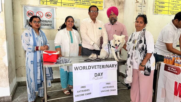 - ਵਿਸ਼ਵ ਵੈਟਰਨਰੀ ਦਿਵਸ ਮੌਕੇ ਐਂਟੀ ਰੈਬੀਜ਼ ਵੈਕਸੀਨ ਕੈਂਪ ਲਗਾਇਆ