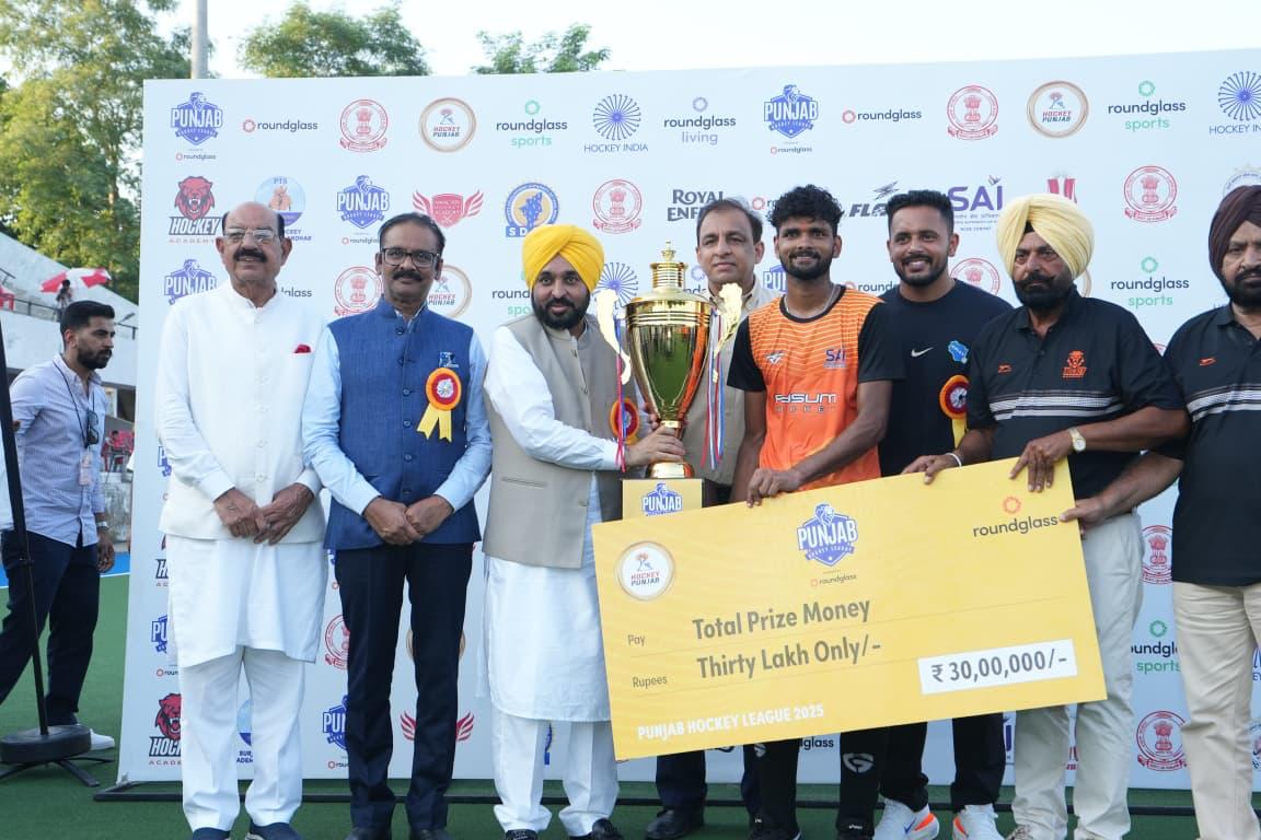 ਜਲੰਧਰ, 27 ਸਤੰਬਰ-ਪੰਜਾਬ ਦੇ ਮੁੱਖ ਮੰਤਰੀ ਭਗਵੰਤ ਸਿੰਘ ਮਾਨ ਨੇ ਅੱਜ ਸੂਬੇ ਵਿੱਚ ਹਾਕੀ ਦੀ ਪੁਰਾਤਨ ਸ਼ਾਨ ਨੂੰ ਬਹਾਲ ਕਰਨ ਦਾ ਪ੍ਰਣ ਲਿਆ।ਅੱਜ ਇੱਥੇ ਪੰਜਾਬ ਹਾਕੀ ਲੀਗ 2025 ਦੇ ਫਾਈਨਲ ਮੈਚ ਦੌਰਾਨ ਇਕੱਠ ਨੂੰ ਸੰਬੋਧਨ ਕਰਦਿਆਂ ਮੁੱਖ ਮੰਤਰੀ ਨੇ ਕਿਹਾ ਕਿ ਇਹ ਬਹੁਤ ਮਾਣ ਅਤੇ ਸੰਤੁਸ਼ਟੀ ਦੀ ਗੱਲ ਹੈ ਕਿ ਪਹਿਲੀ ਜੂਨੀਅਰ ਹਾਕੀ ਲੀਗ ਪੰਜਾਬ ਹਾਕੀ ਅਤੇ ਰਾਊਂਡ ਗਲਾਸ ਅਕਾਦਮੀ ਦੁਆਰਾ ਸ਼ੁਰੂ ਕੀਤੀ ਜਾ ਰਹੀ ਹੈ। ਉਨ੍ਹਾਂ ਕਿਹਾ ਕਿ ਇਹ ਹਾਕੀ ਦੇ ਖੇਤਰ ਵਿੱਚ ਹੁਣ ਤੱਕ ਦੀ ਸਭ ਤੋਂ ਵੱਧ ਇਨਾਮੀ ਰਾਸ਼ੀ ਵਾਲੀ ਲੀਗ ਹੈ। ਭਗਵੰਤ ਸਿੰਘ ਮਾਨ ਨੇ ਕਿਹਾ ਕਿ ਇਹ ਲੀਗ ਮੋਹਾਲੀ ਤੋਂ ਸ਼ੁਰੂ ਕੀਤੀ ਗਈ ਸੀ, ਜਿਸਦੇ ਫਾਈਨਲ ਜਲੰਧਰ ਵਿੱਚ ਖੇਡੇ ਜਾ ਰਹੇ ਹਨ।ਮੁੱਖ ਮੰਤਰੀ ਨੇ ਕਿਹਾ ਕਿ ਸੀਨੀਅਰ ਖਿਡਾਰੀਆਂ ਲਈ ਤਾਂ ਵੱਖ-ਵੱਖ ਲੀਗ ਮੈਚ ਕਰਵਾਏ ਜਾਂਦੇ ਹਨ, ਪਰ ਇਹ ਦੇਸ਼ ਵਿੱਚ ਸ਼ੁਰੂ ਕੀਤੀ ਗਈ ਪਹਿਲੀ ਜੂਨੀਅਰ ਲੀਗ ਹੈ। ਉਨ੍ਹਾਂ ਕਿਹਾ ਕਿ ਇਹ ਇੱਕ ਯਾਦਗਾਰੀ ਮੌਕਾ ਹੈ ਕਿਉਂਕਿ ਇੱਥੇ ਸੁਰਜੀਤ ਹਾਕੀ ਸਟੇਡੀਅਮ ਵਿੱਚ, ਪੰਜਾਬ ਦੇ ਮਹਾਨ ਹਾਕੀ ਖਿਡਾਰੀ, ਜਿਨ੍ਹਾਂ ਨੇ ਦੇਸ਼ ਦਾ ਨਾਮ ਰੌਸ਼ਨ ਕੀਤਾ ਹੈ, ਇਕੱਠੇ ਹੋਏ ਹਨ। ਭਗਵੰਤ ਸਿੰਘ ਮਾਨ ਨੇ ਕਿਹਾ ਕਿ ਪ੍ਰਦਰਸ਼ਨੀ ਮੈਚ ਵਿੱਚ, ਲੈਜੈਂਡ ਇਲੈਵਨ ਦਾ ਸਟਾਰ ਇਲੈਵਨ ਨਾਲ ਮੁਕਾਬਲਾ ਹੋਇਆ।
