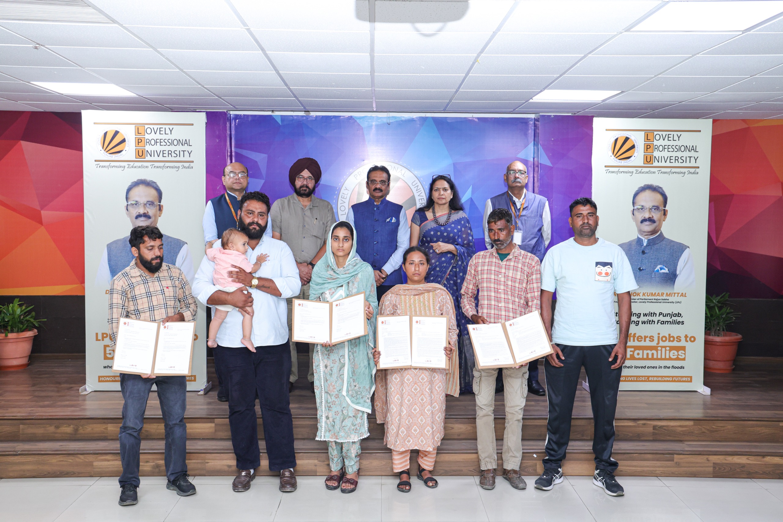 ਜਲੰਧਰ, 03 ਅਕਤੂਬਰ 2025: ਰਾਜ ਸਭਾ ਮੈਂਬਰ ਅਤੇ ਲਵਲੀ ਪ੍ਰੋਫੈਸ਼ਨਲ ਯੂਨੀਵਰਸਿਟੀ (LPU) ਦੇ ਸੰਸਥਾਪਕ ਚਾਂਸਲਰ ਡਾ. ਅਸ਼ੋਕ ਕੁਮਾਰ ਮਿੱਤਲ ਨੇ ਹਾਲ ਹੀ ਦੀ ਪੰਜਾਬ ਬਾੜ੍ਹ ਵਿੱਚ ਆਪਣੇ ਪਰਿਵਾਰਕ ਮੈਂਬਰ ਗੁਆ ਚੁੱਕੇ ਪਰਿਵਾਰਾਂ ਨੂੰ ਪੱਕੀਆਂ ਨੌਕਰੀਆਂ ਦੇ ਅਪਾਇੰਟਮੈਂਟ ਲੈਟਰ ਸੌਂਪੇ। ਇਸ ਕਦਮ ਨਾਲ ਪ੍ਰਭਾਵਿਤ ਪਰਿਵਾਰਾਂ ਨੂੰ ਆਰਥਿਕ ਸਥਿਰਤਾ ਅਤੇ ਲੰਬੇ ਸਮੇਂ ਲਈ ਰੋਜ਼ਗਾਰ ਦੀ ਇੱਜ਼ਤ ਮਿਲੇਗੀ। ਇਹ ਮੁਹਿੰਮ, ਜਿਸ ਦੀ ਘੋਸ਼ਣਾ ਡਾ. ਮਿੱਤਲ ਨੇ 5 ਸਤੰਬਰ ਨੂੰ ਕੀਤੀ ਸੀ, ਉਨ੍ਹਾਂ ਦੇ ਵਾਅਦੇ ਦਾ ਹਿੱਸਾ ਸੀ ਕਿ ਬਾੜ੍ਹ ਪੀੜਤ ਪਰਿਵਾਰਾਂ ਨੂੰ ਲਗਾਤਾਰ ਸਹਾਇਤਾ ਦਿੱਤੀ ਜਾਵੇਗੀ।*ਲਾਭਪਾਤਰੀਆਂ ਨਾਲ ਗੱਲ ਕਰਦਿਆਂ ਡਾ. ਮਿੱਤਲ ਨੇ ਕਿਹਾ –* “ਜਾਨਾਂ ਦੀ ਕਮੀ ਨੂੰ ਕੋਈ ਵੀ ਭਰਪਾਈ ਨਹੀਂ ਕਰ ਸਕਦਾ। ਪਰ LPU ਵਿੱਚ ਪੱਕੀ ਨੌਕਰੀ ਦੇ ਕੇ ਅਸੀਂ ਇਹ ਯਕੀਨੀ ਬਣਾਉਣਾ ਚਾਹੁੰਦੇ ਹਾਂ ਕਿ ਬਾੜ੍ਹ ਦਾ ਦੁੱਖ ਝੱਲ ਰਹੇ ਪਰਿਵਾਰ ਆਪਣੇ ਸੰਘਰਸ਼ ਵਿੱਚ ਇਕੱਲੇ ਨਾ ਰਹਿਣ। ਇਹ ਸਿਰਫ਼ ਨੌਕਰੀ ਨਹੀਂ, ਸਨਮਾਨ, ਸੁਰੱਖਿਆ ਅਤੇ ਜੀਵਨ ਮੁੜ ਬਣਾਉਣ ਦਾ ਮੌਕਾ ਹੈ।”