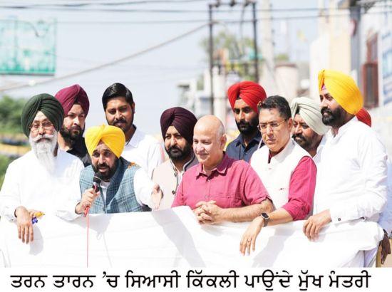 ਬਠਿੰਡਾ,18 ਅਕਤੂਬਰ 2025: ਵਿਧਾਨ ਸਭਾ ਹਲਕਾ ਤਰਨ ਤਾਰਨ ’ਚ ਮੁੱਖ ਮੰਤਰੀ ਭਗਵੰਤ ਮਾਨ ਨੇ ਆਪਣੇ ਸਿਆਸੀ ਵਿਰੋਧੀਆਂ ਖਿਲਾਫ ਨਵੀਂ ਸਿਆਸੀ ਕਿੱਕਲੀ ਪਾਈ ਹੈ ਜਿਸ ਰਾਹੀਂ ਉਨ੍ਹਾਂ ਸ਼੍ਰੋਮਣੀ ਅਕਾਲੀ ਦਲ ਦੇ ਪ੍ਰਧਾਨ ਸੁਖਬੀਰ ਸਿੰਘ ਬਾਦਲ ਅਤੇ ਬਿਕਰਮ ਸਿੰਘ ਮਜੀਠੀਆ ਦੀ ਘੇਰਾਬੰਦੀ ਕੀਤੀ ਹੈ। ਠੀਕ 15 ਮਹੀਨੇ ਬਾਅਦ ਹਣ ਵਾਲੀਆਂ ਪੰਜਾਬ ਵਿਧਾਨ ਸਭਾ ਚੋਣਾਂ ਤੋਂ ਪਹਿਲਾਂ ਬੁੱਧਵਾਰ ਨੂੰ ਪਾਰਟੀ ਦੇ ਉਮੀਦਵਾਰ ਹਰਮੀਤ ਸਿੰਘ ਸੰਧੂ ਦੇ ਹੱਕ ’ਚ ਕੀਤੇ ਰੋਡ ਸ਼ੋਅ ਦੌਰਾਨ ਮੁੱਖ ਮੰਤਰੀ ਨੇ ਇਹ ਕਿੱਕਲੀ ਪਾਈ ਹੈ। ਕਿਕਲੀ ਕਲੀਰ ਦੀ , ਗੱਲ ਬਣਦੀ ਨਹੀਂ ਸੁਖਬੀਰ ਦੀ, ਚਿੱਟਾ ਮੇਰੇ ਭਾਈ ਦਾ ਉਹਨੂੰ ਆਪੇ ਹੀ ਫਸਾਈ ਦਾ ਹੁਣ ਉਹਦੇ ਨਾਲ ਮੁਲਾਕਾਤ ਕਰਨ ਨਾਭੇ ਜਾਈਦਾ। ਹਾਲਾਂਕਿ ਮੁੱਖ ਮੰਤਰੀ ਨੇ ਸਮੂਹ ਵਿਰੋਧੀਆਂ ਖਿਲਾਫ ਤਿੱਖੇ ਨਿਸ਼ਾਨੇ ਲਾਏ ਪਰ ਅਕਾਲੀ ਆਗੂਆਂ ਨੂੰ ਇਸ ਤਰਾਂ ਘੇਰਨ ਨੇ ਇੱਕ ਨਵੀਂ ਚੁੰਝ ਚਰਚਾ ਛੇੜ ਦਿੱਤੀ ਹੈ। ਸੀਟ ਆਮ ਆਦਮੀ ਪਾਰਟੀ ਦੇ ਵਿਧਾਇਕ ਡਾ. ਕਸ਼ਮੀਰ ਸਿੰਘ ਸੋਹਲ ਦੇ ਦੇਹਾਂਤ ਮਗਰੋਂ ਖ਼ਾਲੀ ਹੋਈ ਹੈ।