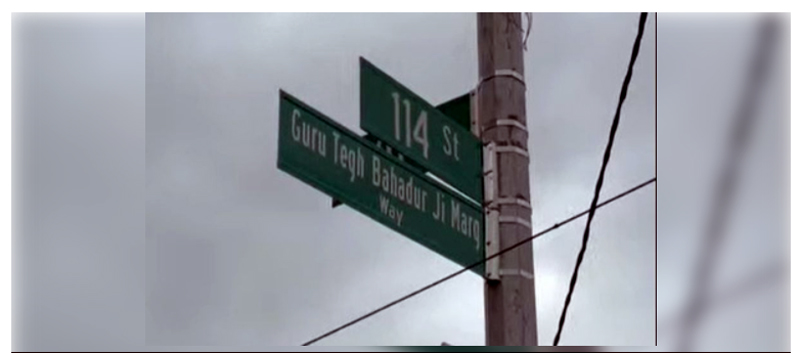 ਨਿਊਯਾਰਕ ਸਿਟੀ ਨੇ ਨੌਵੇਂ ਸਿੱਖ ਗੁਰੂ, ਸ੍ਰੀ ਗੁਰੂ ਤੇਗ ਬਹਾਦਰ ਜੀ ਨੂੰ ਇੱਕ ਵਿਲੱਖਣ ਸ਼ਰਧਾਂਜਲੀ ਭੇਟ ਕੀਤੀ ਹੈ। ਕਵੀਨਜ਼ ਵਿੱਚ 114ਵੀਂ ਸਟਰੀਟ ਅਤੇ 101ਵੀਂ ਐਵੇਨਿਊ ਦੇ ਚੌਰਾਹੇ ਨੂੰ ਹੁਣ ਅਧਿਕਾਰਤ ਤੌਰ ’ਤੇ ‘ਗੁਰੂ ਤੇਗ ਬਹਾਦਰ ਜੀ ਵੇਅ’ ਦਾ ਨਾਮ ਦਿੱਤਾ ਗਿਆ ਹੈ।