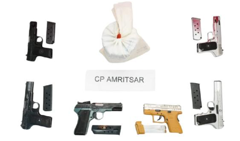 ਮੁੱਖ ਮੰਤਰੀ ਭਗਵੰਤ ਸਿੰਘ ਮਾਨ ਦੇ ਦਿਸ਼ਾ-ਨਿਰਦੇਸ਼ਾਂ ਅਨੁਸਾਰ ਪੰਜਾਬ ਨੂੰ ਸੁਰੱਖਿਅਤ ਸੂਬਾ ਬਣਾਉਣ ਲਈ ਵਿੱਢੀ ਮੁਹਿੰਮ ਦੌਰਾਨ ਅੰਮ੍ਰਿਤਸਰ ਕਮਿਸ਼ਨਰੇਟ ਪੁਲਿਸ ਨੇ ਪੰਜ ਵਿਅਕਤੀਆਂ ਨੂੰ 1.01 ਕਿਲੋਗ੍ਰਾਮ ਹੈਰੋਇਨ ਅਤੇ ਛੇ ਆਧੁਨਿਕ ਪਿਸਤੌਲਾਂ ਸਮੇਤ ਗ੍ਰਿਫ਼ਤਾਰ ਕਰਕੇ ਪਾਕਿਸਤਾਨ ਨਾਲ ਜੁੜੇ ਹਥਿਆਰ ਅਤੇ ਨਾਰਕੋ ਨੈੱਟਵਰਕ ਦਾ ਪਰਦਾਫਾਸ਼ ਕਰ ਦਿੱਤਾ ਹੈ। ਇਹ ਜਾਣਕਾਰੀ ਅੱਜ ਇੱਥੇ ਡਾਇਰੈਕਟਰ ਜਨਰਲ ਆਫ ਪੁਲਿਸ (ਡੀਜੀਪੀ) ਪੰਜਾਬ ਗੌਰਵ ਯਾਦਵ ਨੇ ਦਿੱਤੀ।